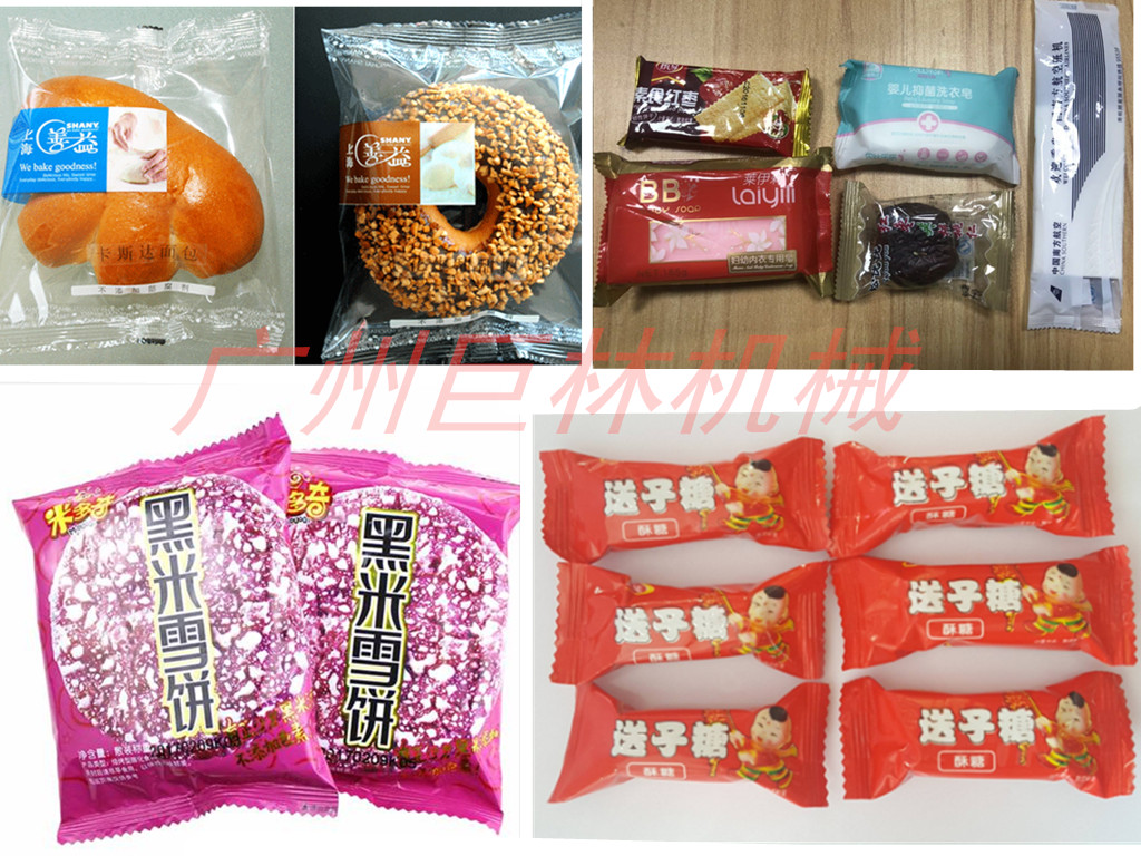 適合于餅干、米通、雪餅、蛋黃派、巧克力、面包、方便面、月餅、日用品、工業(yè)零件、紙盒或托盤等各類有規(guī)則物體的包裝。