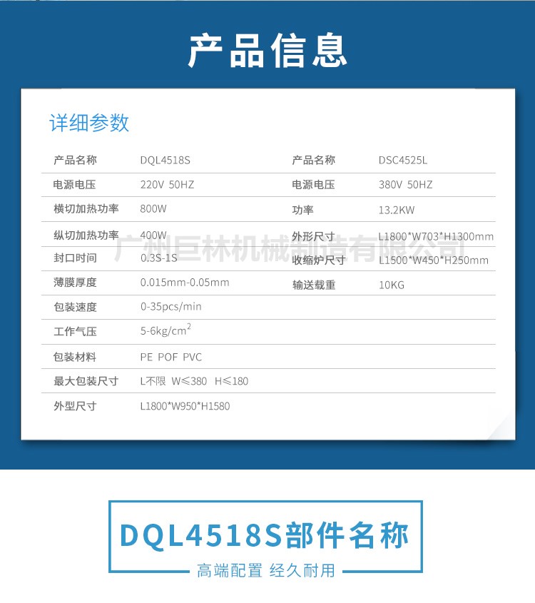 【DQL4518S全自動(dòng)邊封封切機(jī)+DSC4525L熱收縮包裝機(jī) 】詳細(xì)信息
